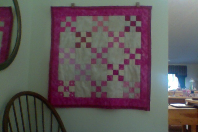I seem to have issued a challenge by e-mail to a blogging friend Joanne..... to finish something by the end of November! She took me up on it and I'm going with something similar to what she selected - Finish my hand quilting on the Hugs and Kisses Quilt! I started it last Thanksgiving so it will be a year (summer off as its too hot to hand quilt!) if I actually get it done. I spent the morning yesterday watching a few episodes of season 4 of Grey's Anatomy and hand stitching. I made some good progress on the side cream border....... lets see if this can be a finished quilt at the end of next month! My next hoop move is a corner =). One side of the first border will be done. I am debating going back and doing the peels on the outer border too... and hand stitching together the edge.
